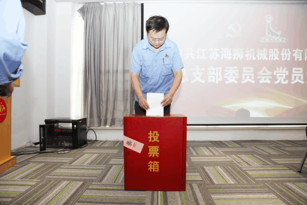 與會黨員以不記名投票方式差額選舉產(chǎn)生中共江蘇海獅機(jī)械股份有限公司總支部新一屆委員會。